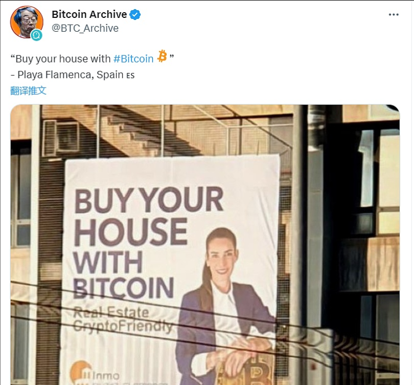 Bitcoin Archive发推特表示,西班牙弗拉门戈海滩出现大幅广告标语“用Bitcoin买房子”。