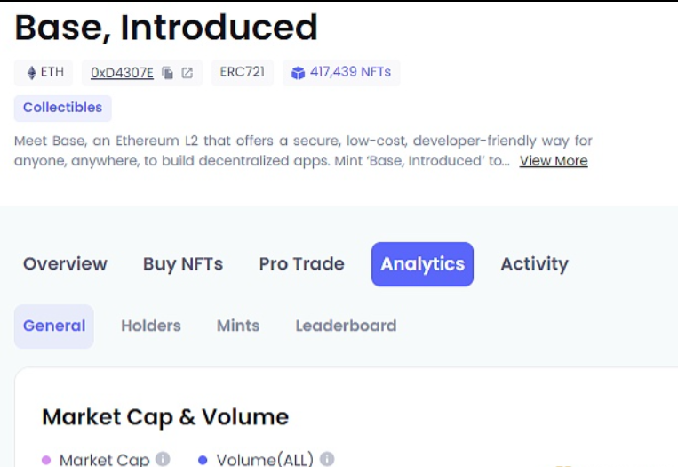 据nftgo.io最新数据显示,Coinbase L2网络Base, Introduced”NFT市值已突破300万美元,本文撰写时达到304万美元,当前“Base, Introduced”NFT地板价为0.0037 ETH,交易总额约为113万美元。历史数据显示,“Base, Introduced”NFT系列市值于2月24日首次突破100万美元,这意味着该指标过去一周已增长2倍。