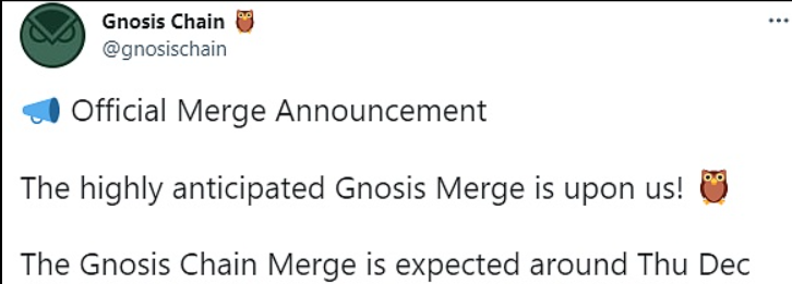 以太坊侧链Gnosis Chain官方推文称,Gnosis合并预计在北京时间12月9日上午02:47左右进行。此次合并,Gnosis Chain的共识机制将从Proof-of-Authority过渡到PoS。