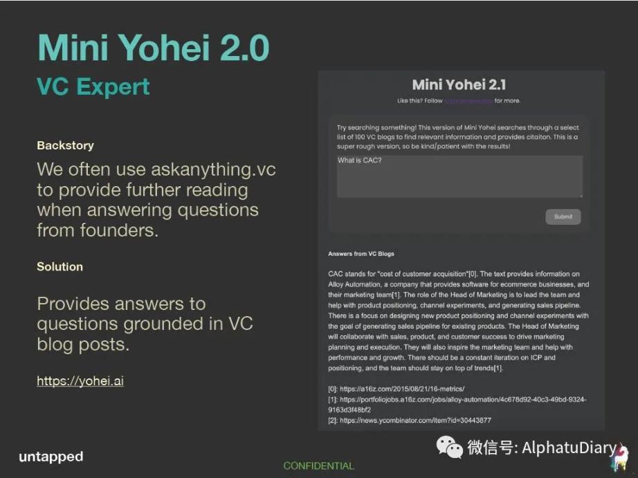 Mini Yohei 是这家基金给被投公司创始人的工具,他们可以得到: