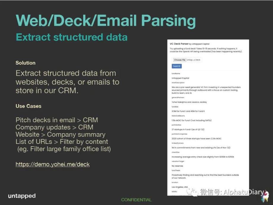 所有的聊天记录和摘要都可以提供给我们,用它来建立新的创始人和投资人的关系。( 有些创始人会在聊天中留下他们的电子邮件,以便基金联系他们)