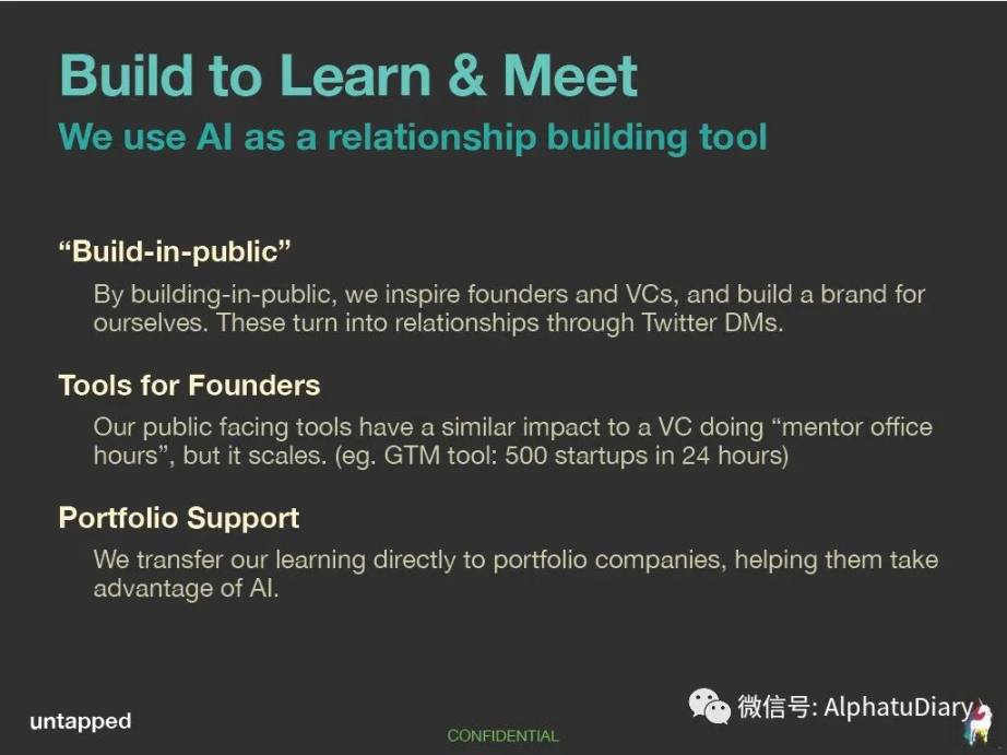 人工智能工具逐步触及到了业务的每个方面,希望这些可以激发一些关于 AI 如何应用于风险投资基金业务的想法,也希望能启发一些大家构建自己基金品牌的思路。