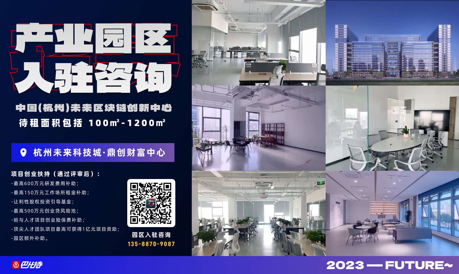中国(杭州)未来区块链创新中心是2020年区块链之家与杭州未来科技城管委会共同成立的第一个区块链产业园区,投入运营之后吸引众多区块链头部企业纷纷入驻,杭州市共 5 家区块链准独角兽企业,其中 4 家入驻园区。入驻的区块链企业涵盖媒体服务、底层技术研发、大数据、分布式存储、智能风控、政务、司法存证、隐私计算、智慧城市、智慧社区等各个领域。