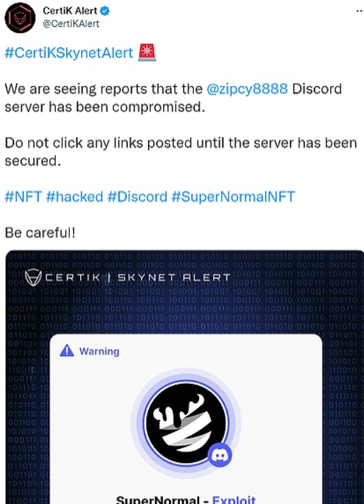 据CertiK监测,SuperNormal项目Discord服务器遭到攻击。请社区用户不要点击该Discord服务器发送的任何链接。
