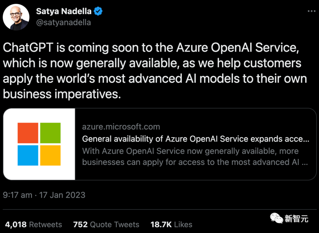 除了搜索引擎,ChatGPT也被微软火速整进了云平台Azure中。