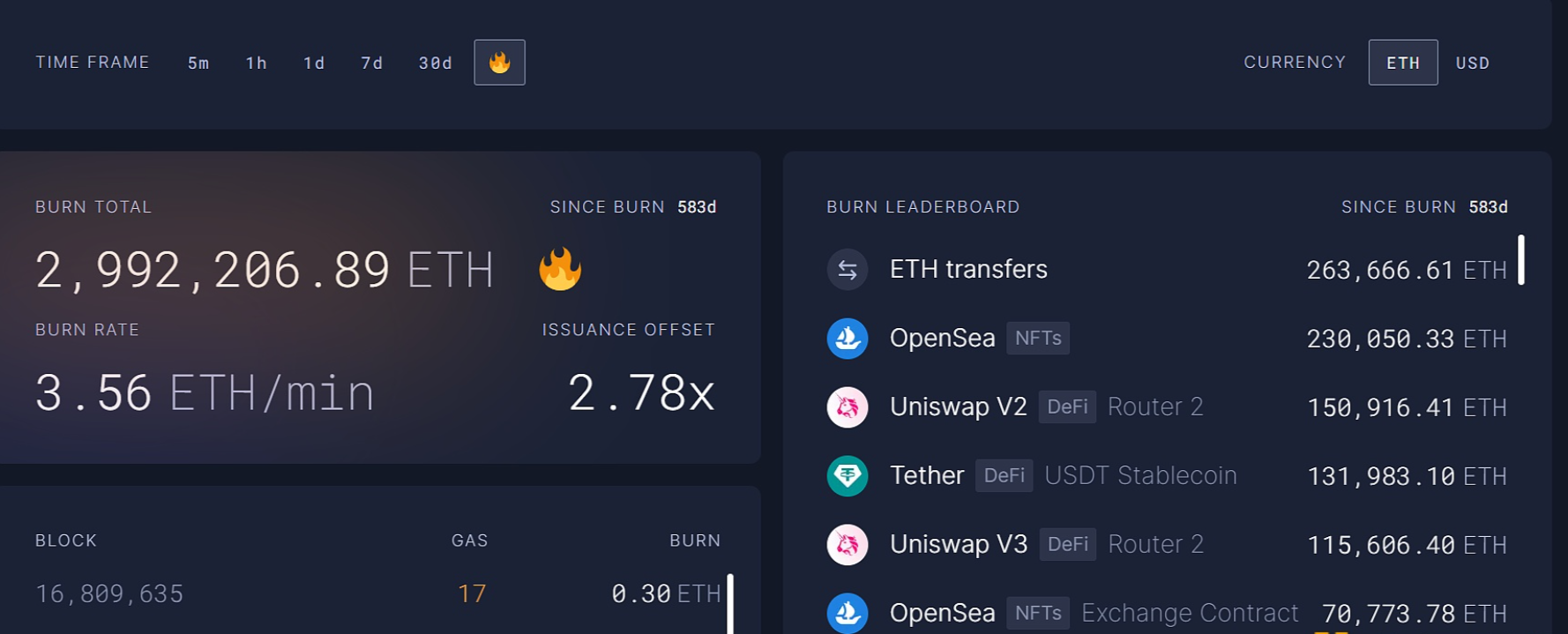 据Ultrasound数据显示,截止目前,以太坊网络总共销毁2992206.89枚ETH。其中,OpenSea销毁230050.33枚ETH,ETHtransfers销毁263666.61枚ETH,Uniswap V2销毁150916.41枚。 注:自以太坊伦敦升级引入EIP-1559后,以太坊网络会根据交易需求和区块大小动态调整每笔交易的BaseFee,而这部分的费用将直接燃烧销毁。