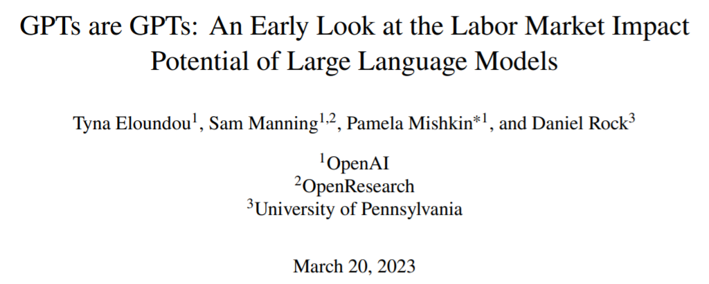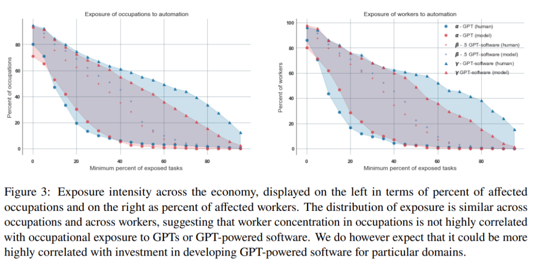 OpenAI 研究了美国超过 1000 个职业,并给他们贴上了执行这些工作所需的各种任务的标签。然后,研究人员使用人工注释器和 GPT-4 模型来评估访问由 ChatGPT 驱动的系统是否会将人类执行特定任务所需的时间减少至少 50%。