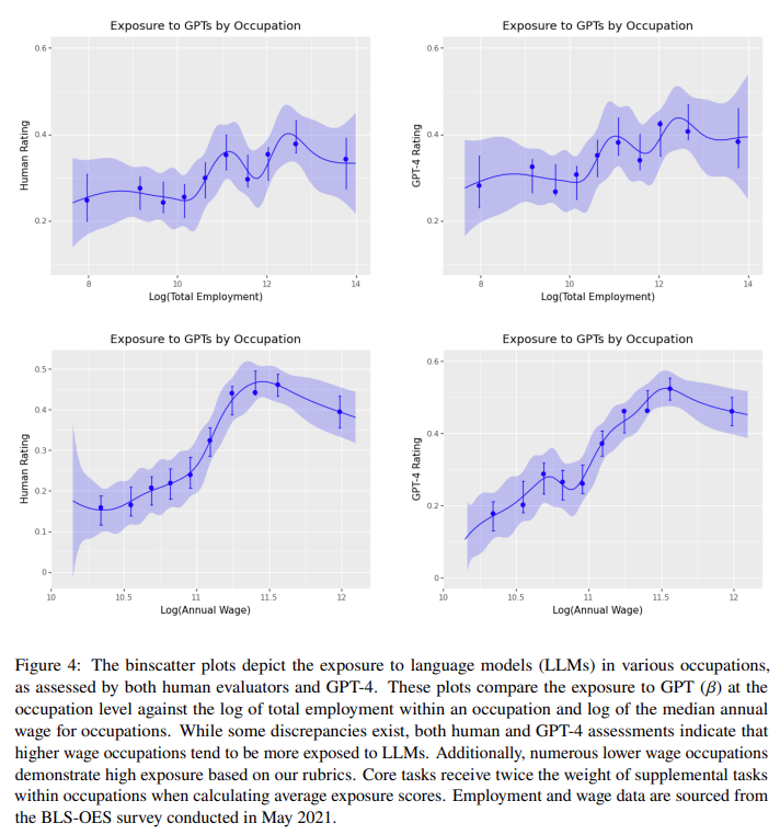 下图 4 描绘了工作薪资与对 GPT 等语言模型接触使用情况的关系。