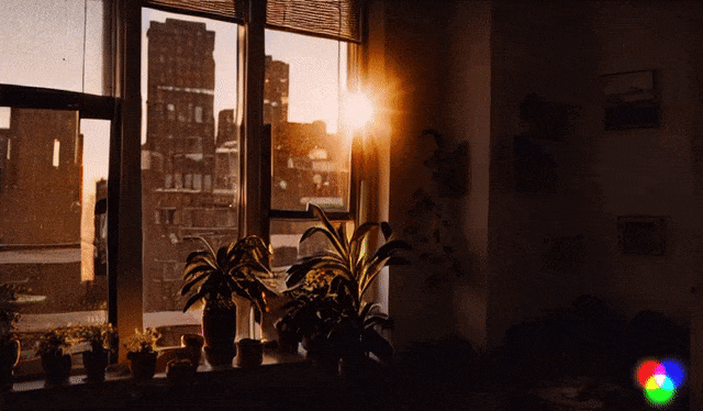 提示:在纽约市的一间阁楼里,傍晚的阳光透过窗户温柔地洒进屋内。