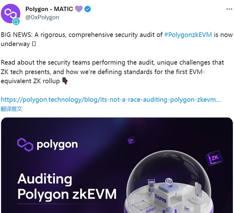 12月16日消息,据Polygon在社交媒体透露,目前已启动zkEVM全面安全审计,本次审计将重点关注zkEVM的正确性和稳健性两方面,也是在启动主网之前最后一个测试网需要完成的关键步骤。 据悉,Polygon本次邀请了两家安全公司Spearbit和Hexens负责相关审计工作,涉及Polygon zkEVM内部37个审计组件,确保在以太坊主网上推出时安全可靠。