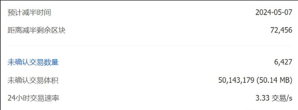 据BTC.com数据显示,目前比特币全网未确认交易数量为6427笔,全网算力为256.50 EH/s,24小时交易速率为3.33交易/s,目前全网难度为34.24 T,预测下次难度上调4.37%至35.74 T,距离调整还剩3天16小时。