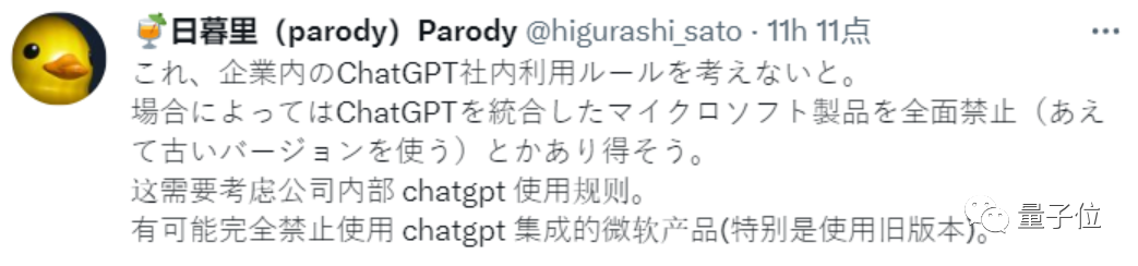 以及如今随着越来越多企业使用ChatGPT,相关使用规则也需要进一步明确。内置了ChatGPT的微软产品,会不会也要禁止?