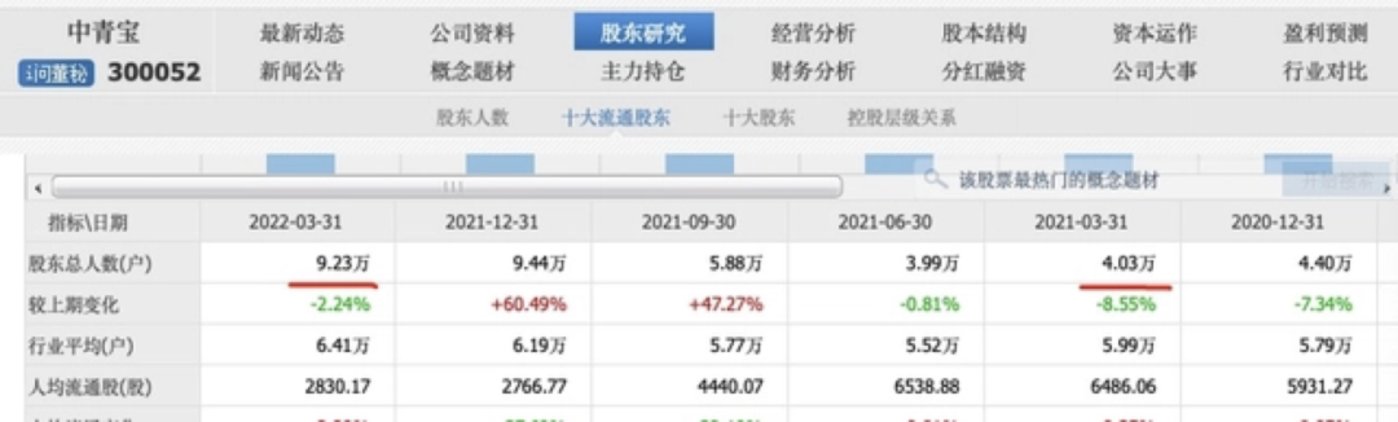 与董事长的套现相反的是,据市场数据显示,2021年一季度,中青宝有散户4万人,到了2021年底变为了9.4万人,直到2022年一季度,依然有9.2万散户。一个合理的推测是,这多出来的五万人冲着元宇宙的概念涌入,但并没有能在合适的时间退出。