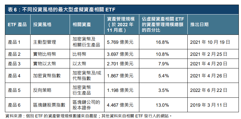 - 于 2022 年 11 月底,加拿大、巴西、美国及澳洲多个市场共有 40 只虚拟资产 ETF,涉及资产管理规模总额达 24 亿美元;
