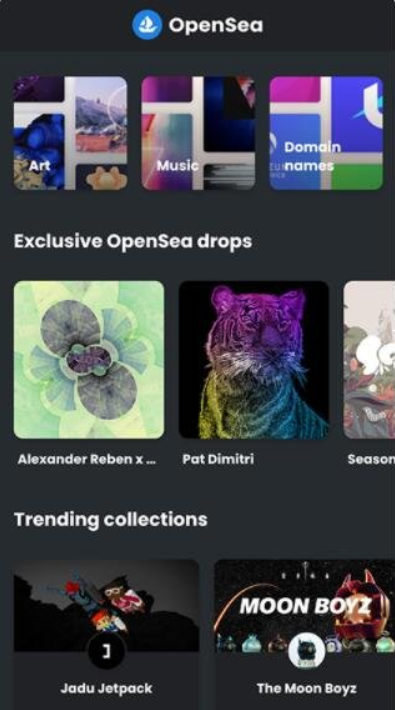 OpenSea是第一个也是目前最大的加密商品点对点市场,包括收藏品、游戏项目和其他由区块链支持的虚拟商品。
