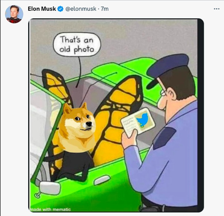 伊隆·马斯克在推特上发布含有狗狗币表情的图片,并配文”That’s an old photo”。此前消息,Twitter将网页Logo改为狗狗表情头像,Doge短线拉升超25%。