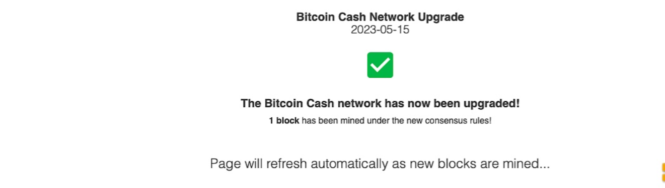 Coin Dance 页面显示,Bitcoin Cash(BCH)主网已经按照计划执行硬分叉升级,并激活新规则。据悉,此次升级内容包括推出 Token 发行功能 CashTokens 以及支持智能合约,允许开发者在 BCH 上开发 DApp。